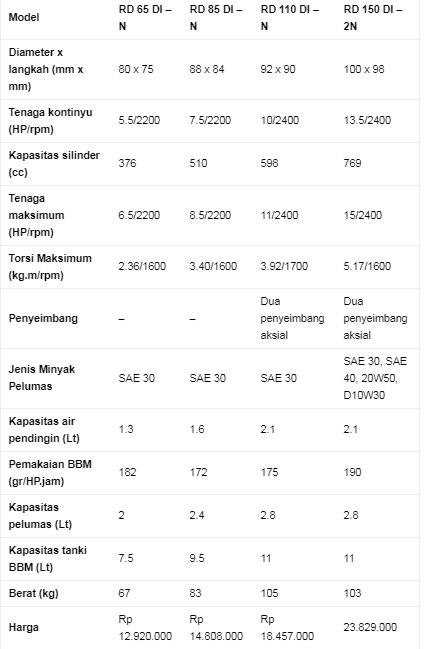 Mesin Diesel berkualitas tinggi menjadi pilihan pengusaha dan kepentingan bisnis kita, Kubota memberikan harga Diesel terbaik dalam kualitas mesin yang bandel dan harga bagus sesuai dengan teknologi yang dipakai. Mesin ini sangat membantu para petani untuk pertanian dan perkebunan, diantaranya untuk membantu pengairan lahan.