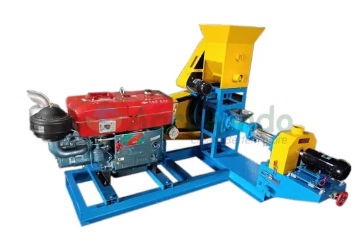 Mesin ini sangat cocok bagi para pengusaha pakan ternak bentuk pelet. Mesin pencetak pelet ikan terapung ini menggunakan penggerak utama yaitu diesel untuk menggerakkan screw, tapi masih membutuhkan tenaga listrik untuk motor yang menggerakkan cutting (pemotong pelet) dan feeder (input adonan).