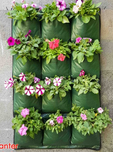 Umumnya di perkotaan, lahan bertanam sangatlah terbatas. Bertanam secara vertikal menjadi solusi yang tepat untuk berkebun. Anda dapat menggantung wall planter pada dinding indoor maupun outdoor. Ada berbagai ukuran yang disediakan, dari 5 kantung hingga 15 kantung tanam. Setiap lubang kantung terdapat lubang drainase di bagian bawah.