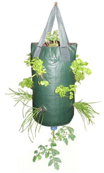 Bag ini menyediakan cara unik dalam bertanam, yaitu tanaman terbalik. Tidak perlu lahan yang luas, bag ini digantung pada teras atau balkon rumah. Dapat digunakan untuk tanaman tomat, cabai, timun, paprika, terong, dan aneka herb lainnya. Terdapat 1 lubang tanam di bagian bawah dan 6 lubang tanam di bagian samping bag.